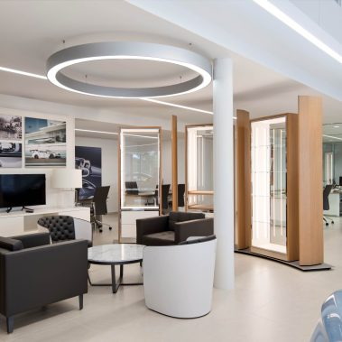 This luxury dealership located at 800 Tamiami Trail North, had an extensive showroom and office renovation. The project included new flooring, glass enclosed offices, PAC 1000R column covers, metal ceiling system, among other finishes. Construction took place during normal business hours.