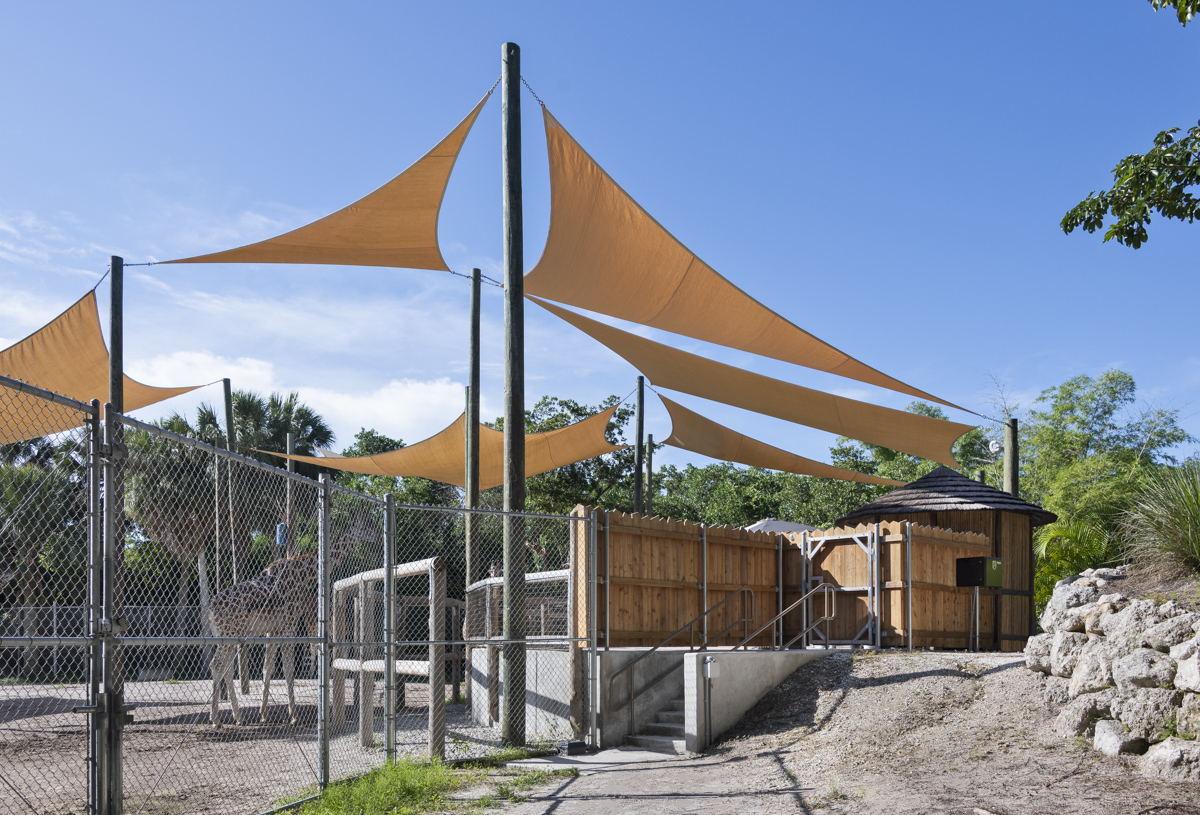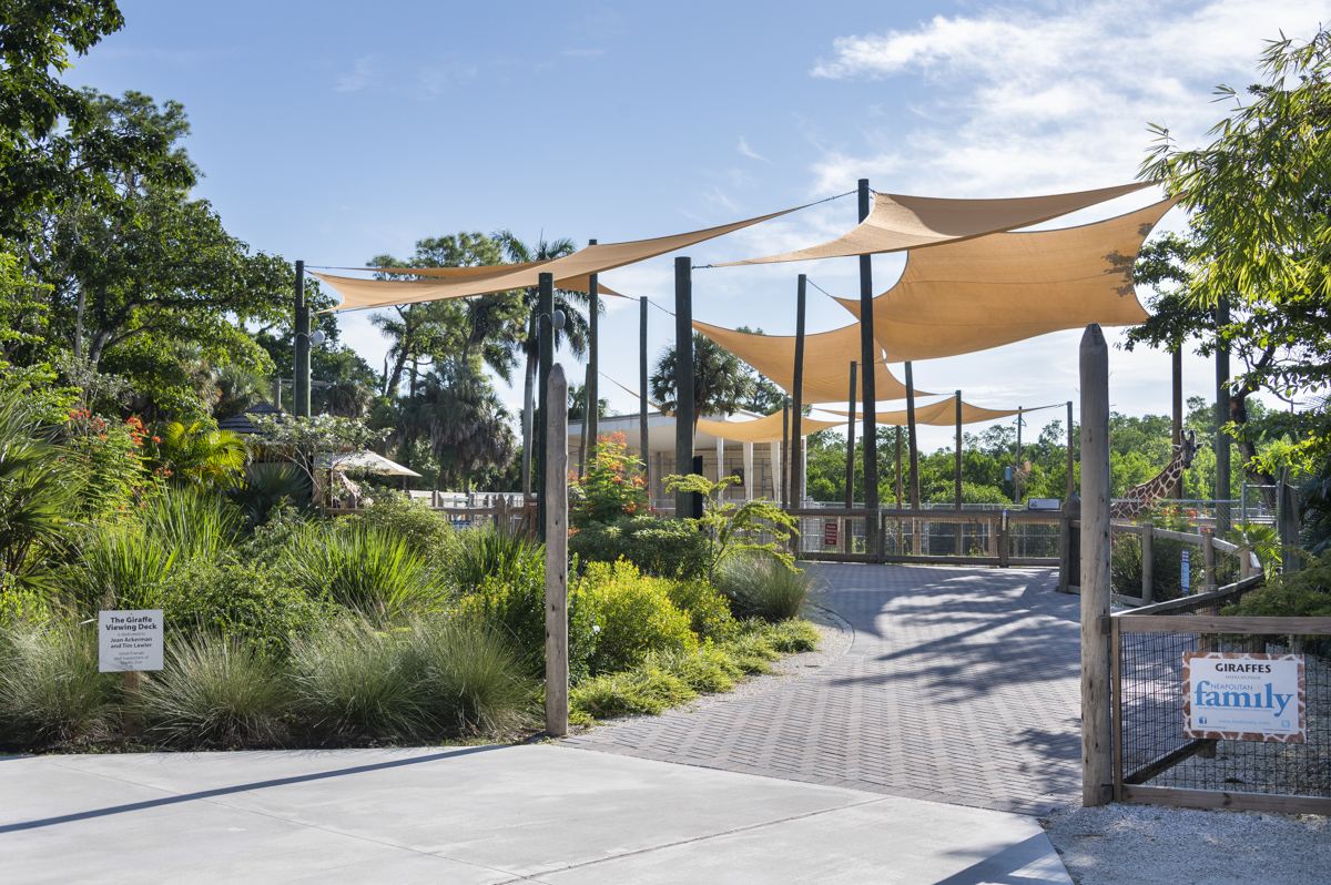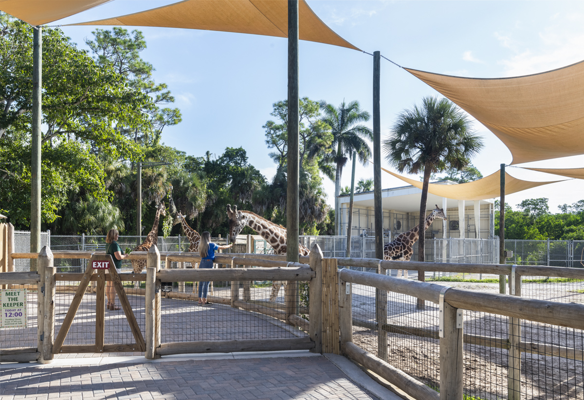 The Naples Zoo giraffe exhibit and feeding experience was fully upgraded. The new design features an elevated viewing and feeding platform to allow more interaction between guests and the giraffes. The renovated space also includes a new restroom and a small cafe with seating overlooking Lake Victoria and the Primate Expedition islands, one of the most stunning views in the zoo.
