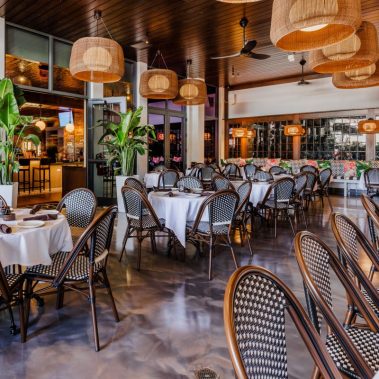Lola 41 is a 6,800-square-foot build-out designed to deliver an upscale dining experience with seating for up to 288 guests. The interior features a commercial kitchen, indoor bar, office space, storage, waiting area, and a mix of open dining, bar, and booth seating. Beyond the doors, the outdoor area enhances the atmosphere with additional open dining and banquet seating for 132 guests, creating