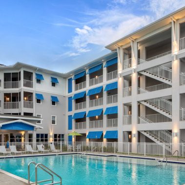 Mainsail Apartments consists of (1) 4-story apartment building and (4) garage buildings. The apartment building houses 100 leasable dwelling units, 1 non-leasable model unit, a clubhouse, shop space for maintenance team, pool and pool deck, leasable storage areas, mechanical/electrical closets, and 2 trash chutes. The clubhouse has a lounge area, gym, restrooms, administrative spaces, a bar top, parcel holding room, and resident mail area.