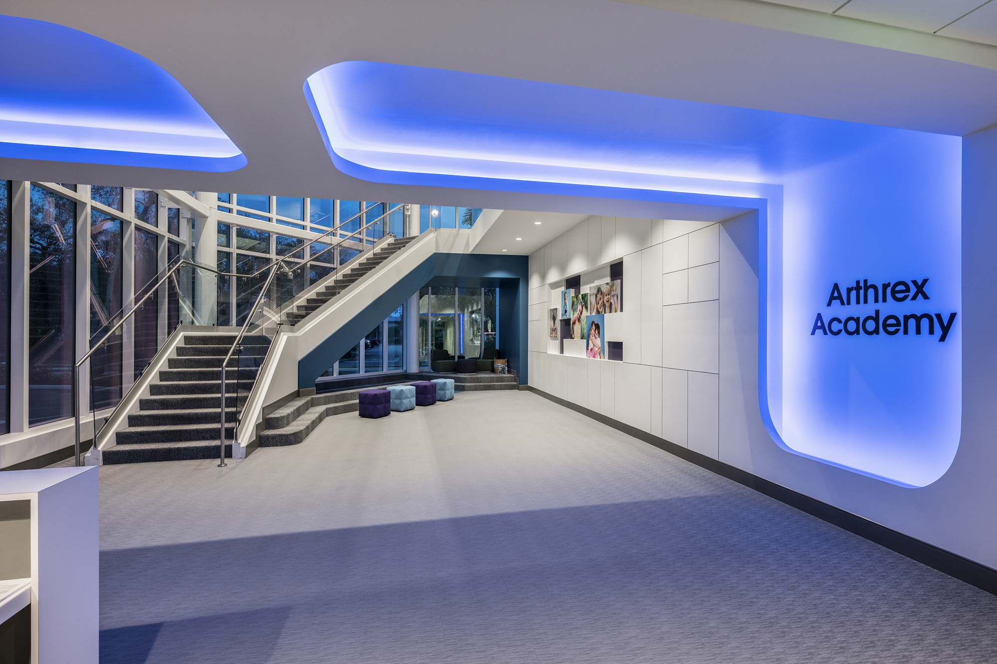 Arthrex Academy is a private childcare and development center located on the Arthrex corporate campus in Naples, Florida. This two-story, 26,000-square-foot facility serves up to 210 children and includes bright, engaging classrooms along with a thoughtfully designed outdoor play area. Purpose-built to support Arthrex employees and their families, the Academy provides a safe, enriching environment focused on early childhood growth and learning.