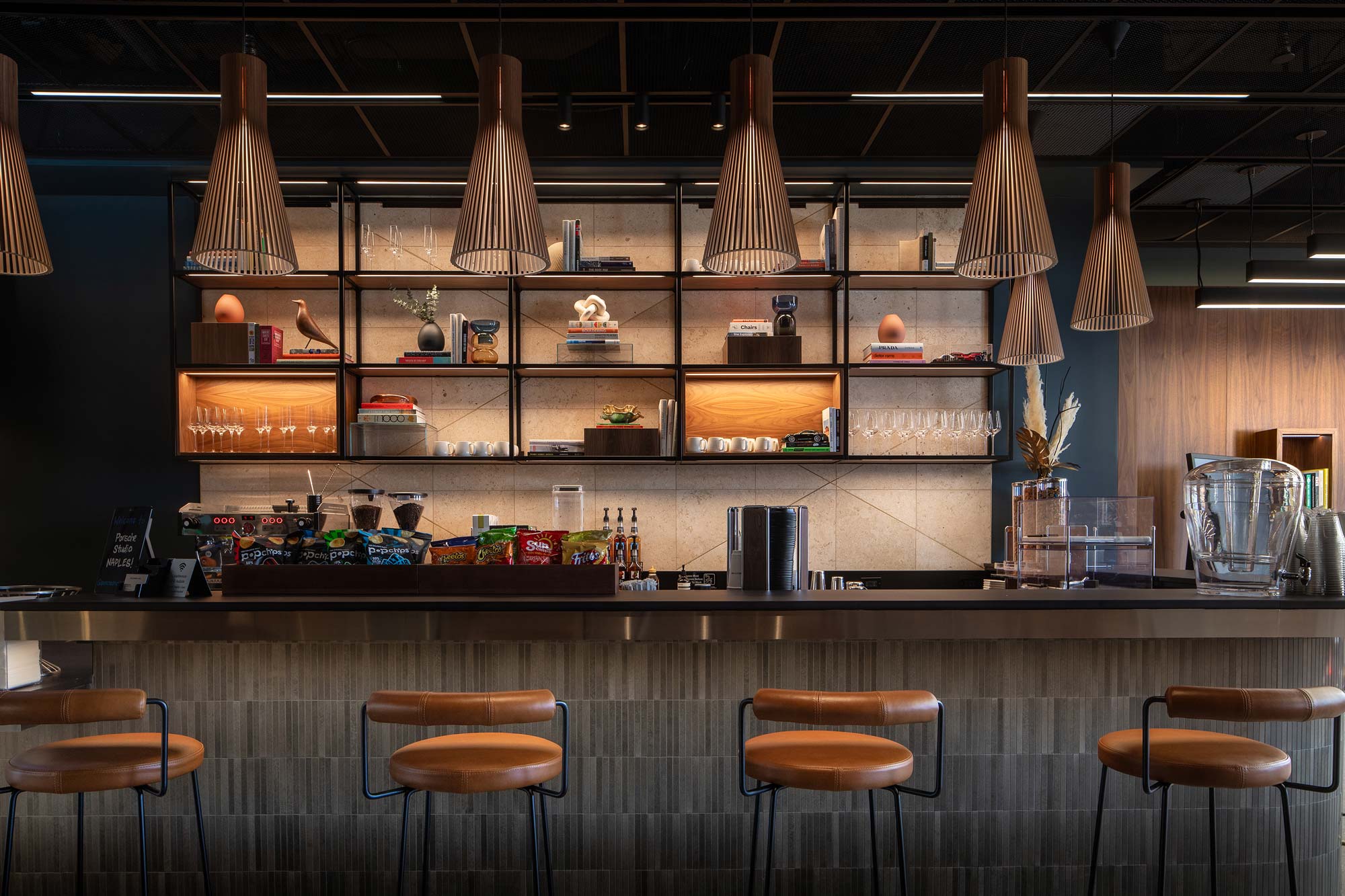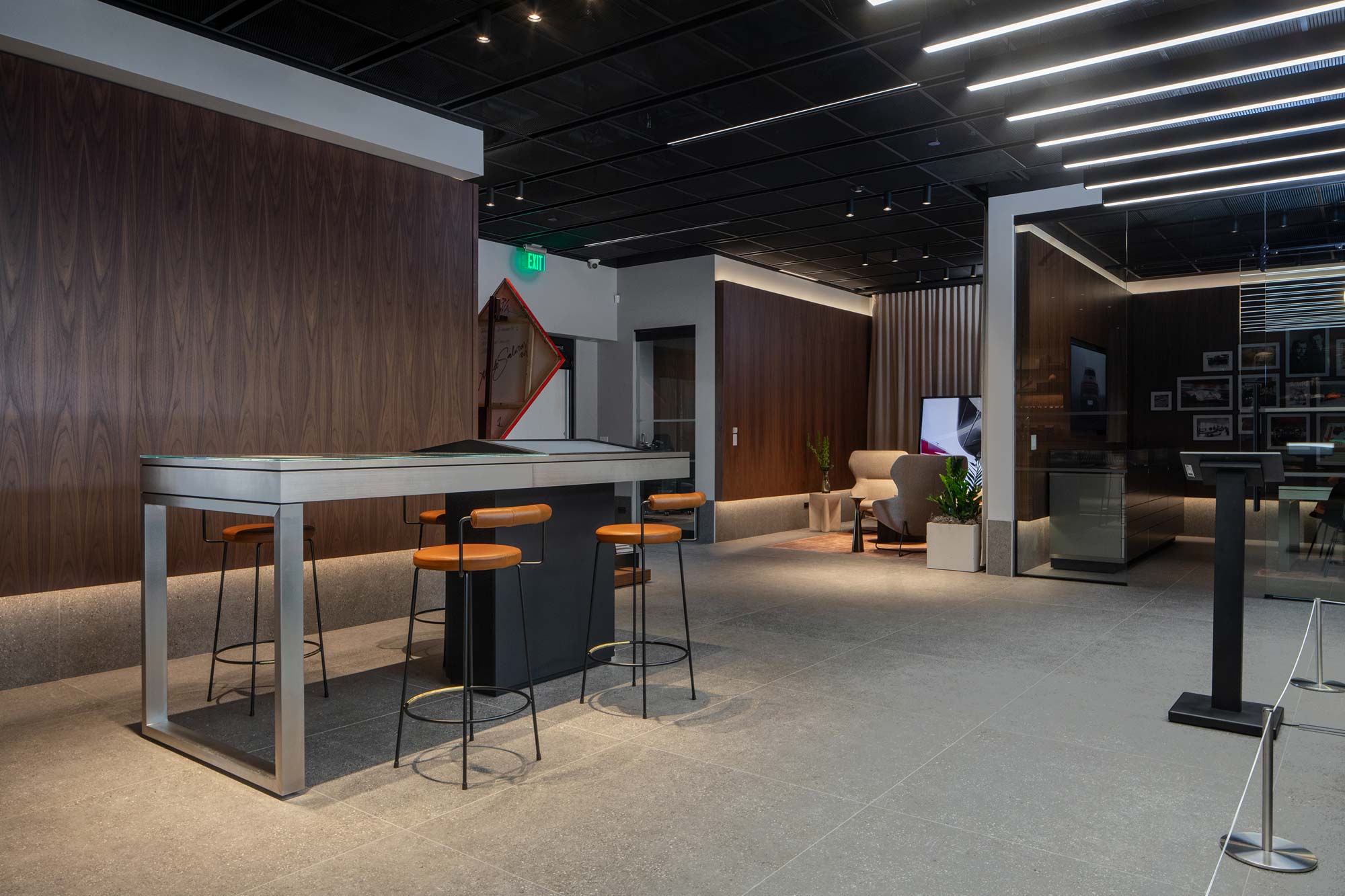 Porsche Studio Naples is a boutique showroom that redefines the automotive experience on Naples’ 5th Avenue South. The space features a premium coffee and beverage bar, refined private meeting lounges, and concierge-style hospitality. At its center, a classic Porsche is showcased under custom lighting, creating a striking focal point. It represents Florida’s first Porsche Studio and one of only five across the U.S.